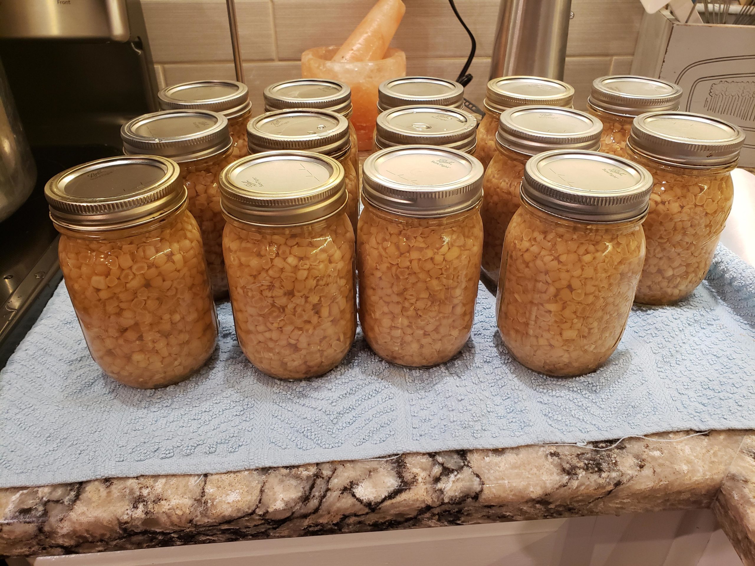 What does 40 ears of corn yield? 14 pints!! Picked up a bushel and