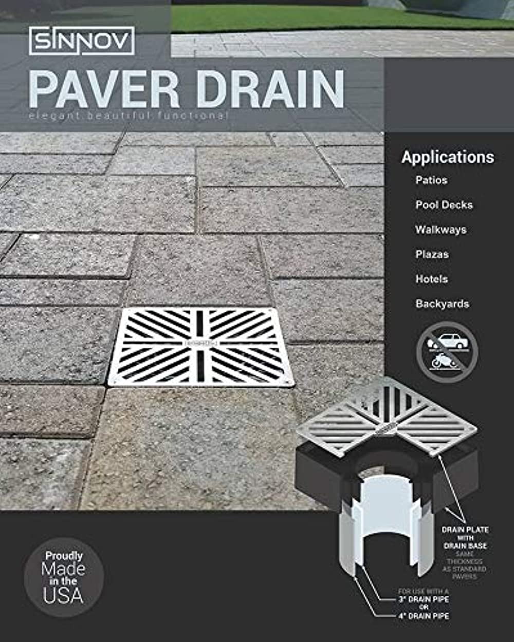 USA Made Sinnov 6" x 6" Premium Outdoor Modern Paver Size Drain