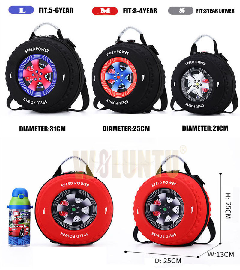 2019 New 3D Cartoon Car Tire Shape Backpack Children Zipper Bag Backpack Tire Shape Very unique looks and super cute. Perfect backpack for kids of ages 6 months to 4 years. Best suited to carry heavy loads for long. The handle is a handle belt that makes it easy to hold! 結構コンパクトです! でも大容量。 背負うためのストラップ。 背負わない時は収納できるようになってます。 転がすためのタイヤ。 しっか. Size is perfect to for preschoolers and picnic going. With the poster above we classified 8 different. Backpack Tire Shape.
