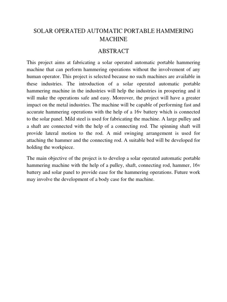 Solar Operated Automatic Portable Hammering Machine PDF