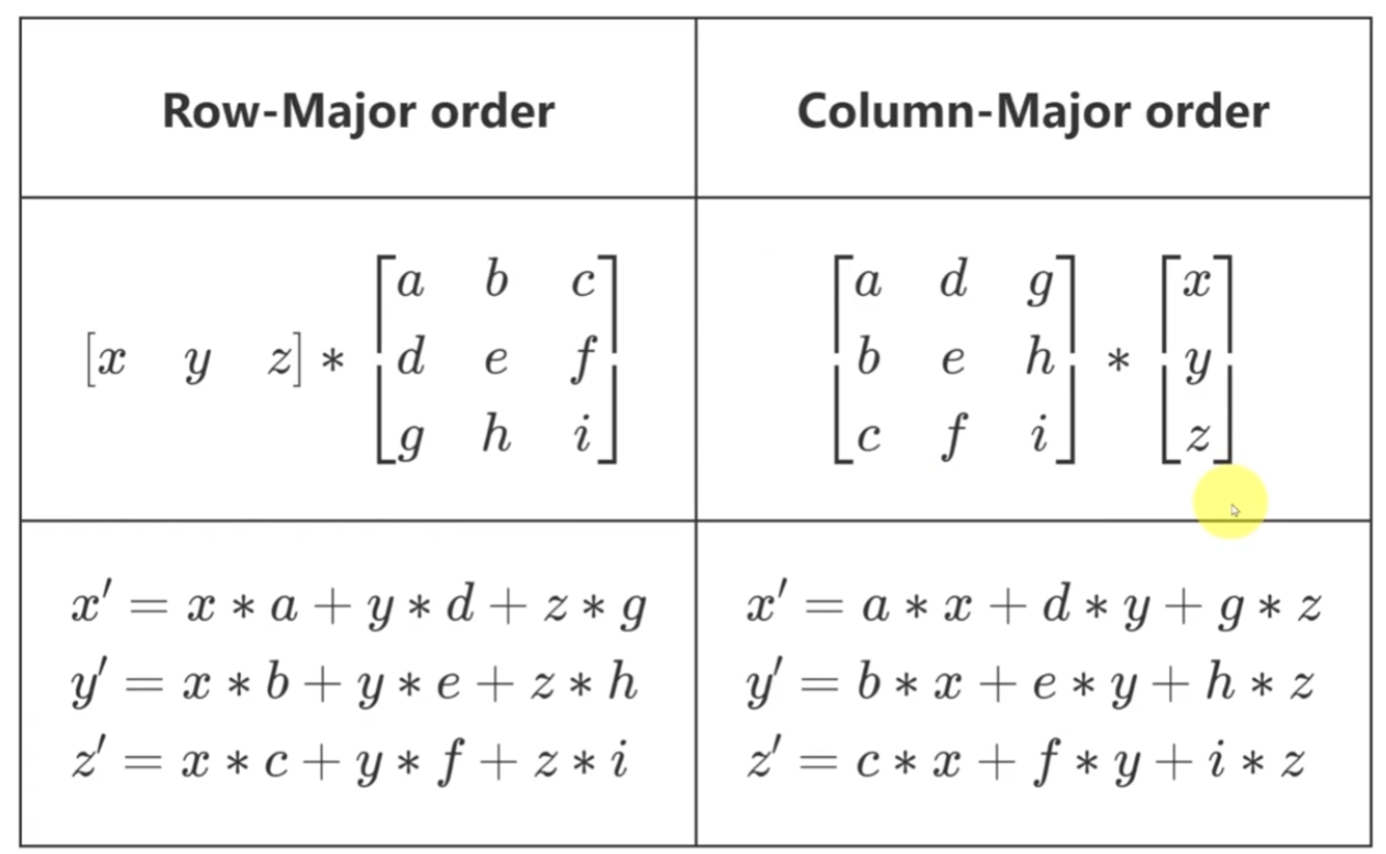 Rowmajor order vs columnmajor order Samuel's tutorial YouTube Column Major Vs Row Major Row major operator* is row * column. Column major (glm) operator* is column * row. The difference is the implementation of operator*. If we take column major order, then we have 4 arrays. Example mat = [a,b;c,d] looks. If row major order is taken, then we have 2 arrays of a[3][4] so each array has $12$ elements. In this post,. Column Major Vs Row Major.