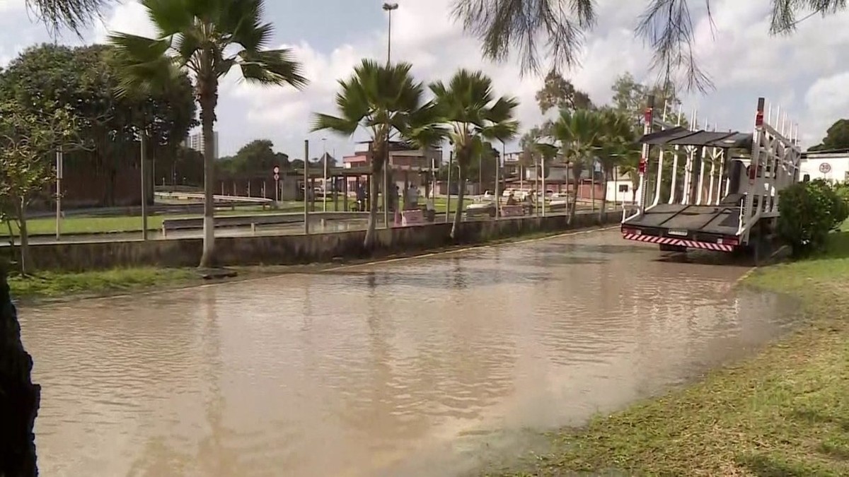 Cano estourado alaga ruas e pátio do Detran e exames práticos são