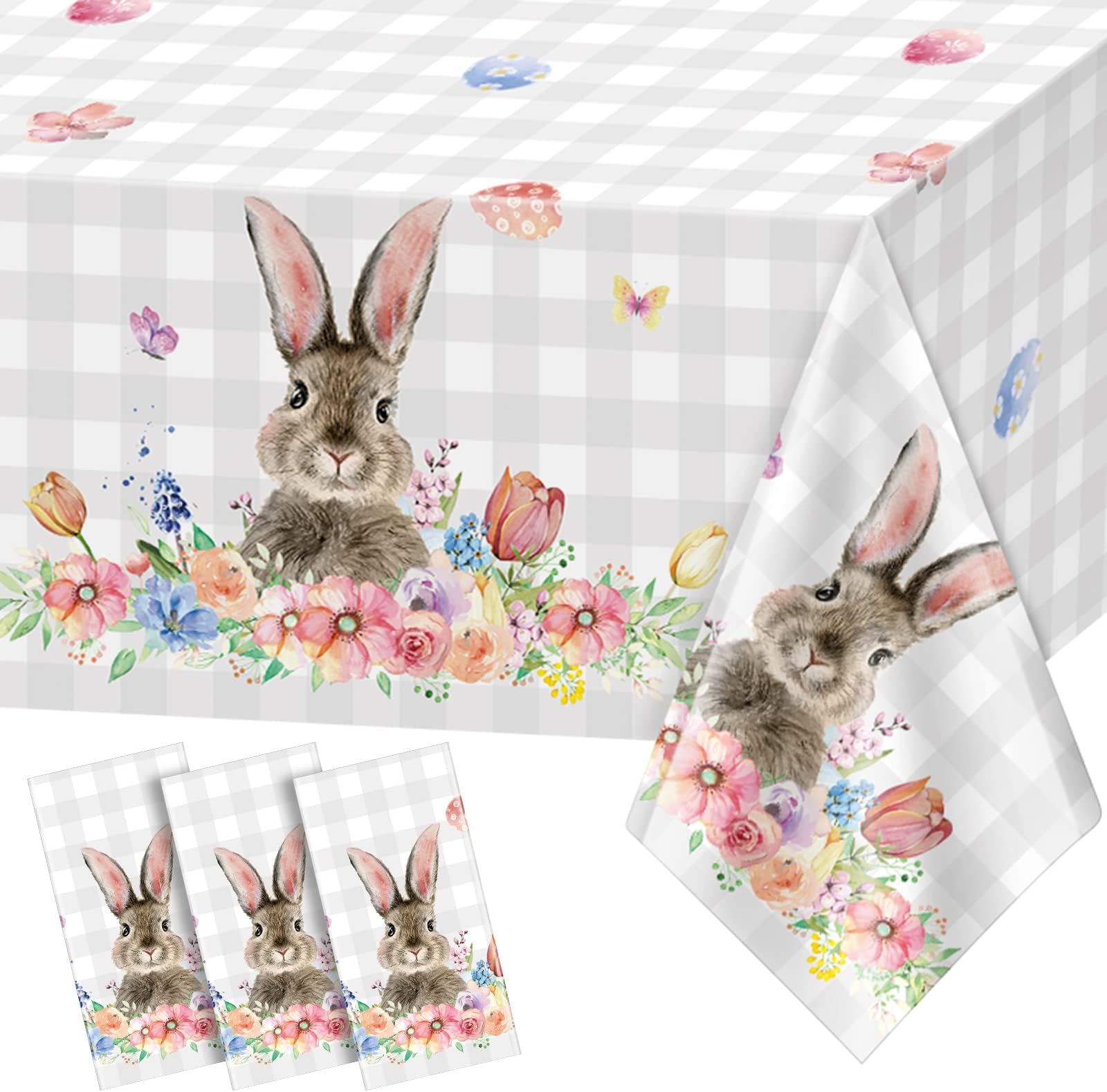 6Pcs Spring Easter Bunny Buffalo Plaid Checkered Tablecloth