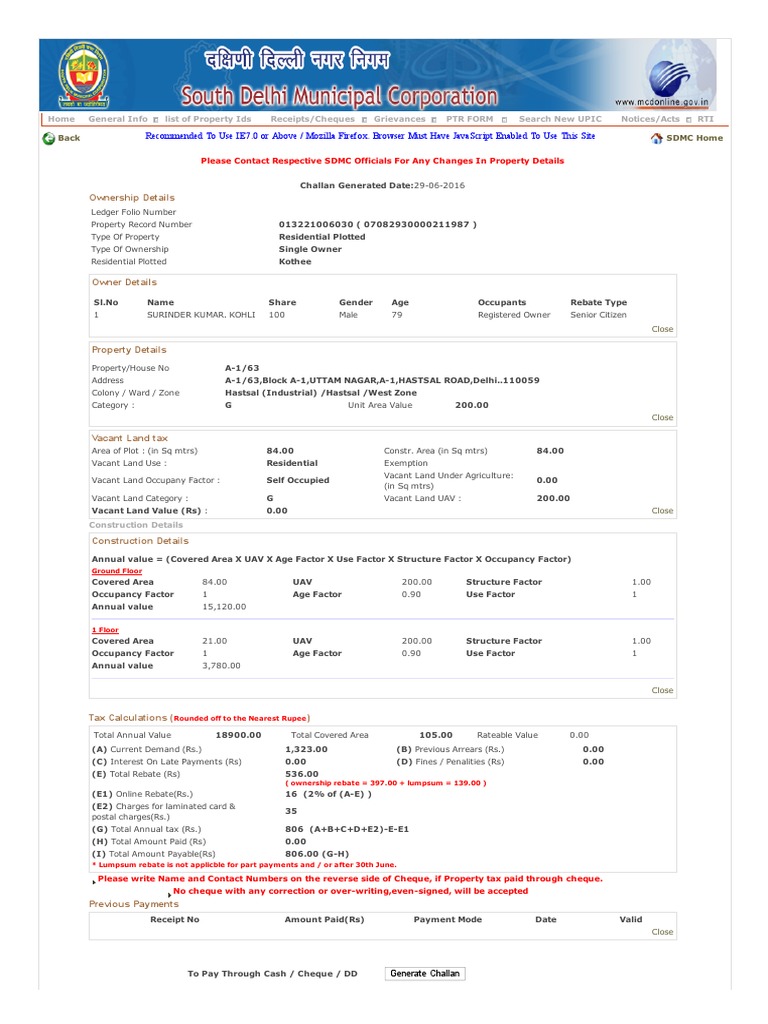 How To Pay MCD House Tax and SDMC Property Tax Simple Steps YouTube Sdmc Property Tax Use Factor Mcd calculates property tax using the ‘unit area system’ for the calculation of property tax across the city. The municipal corporation uses this money to construct and maintain. Unique property identification code (upic), a 15 digit alphanumeric code is mandatory to pay tax for every property. If you own a real estate in south delhi, you must pay south delhi. Sdmc Property Tax Use Factor.