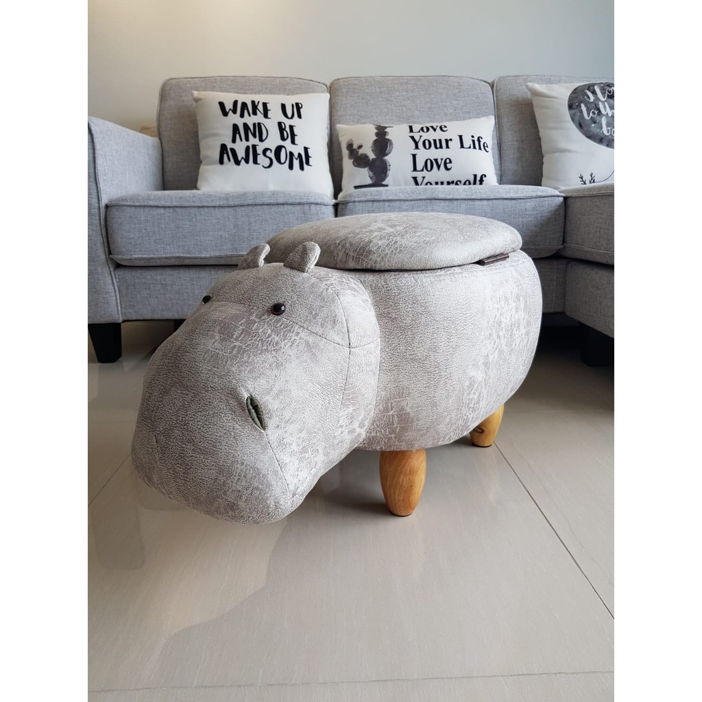 Plush Hippo Animal Ottoman Children Stool with Storage Shopee Singapore