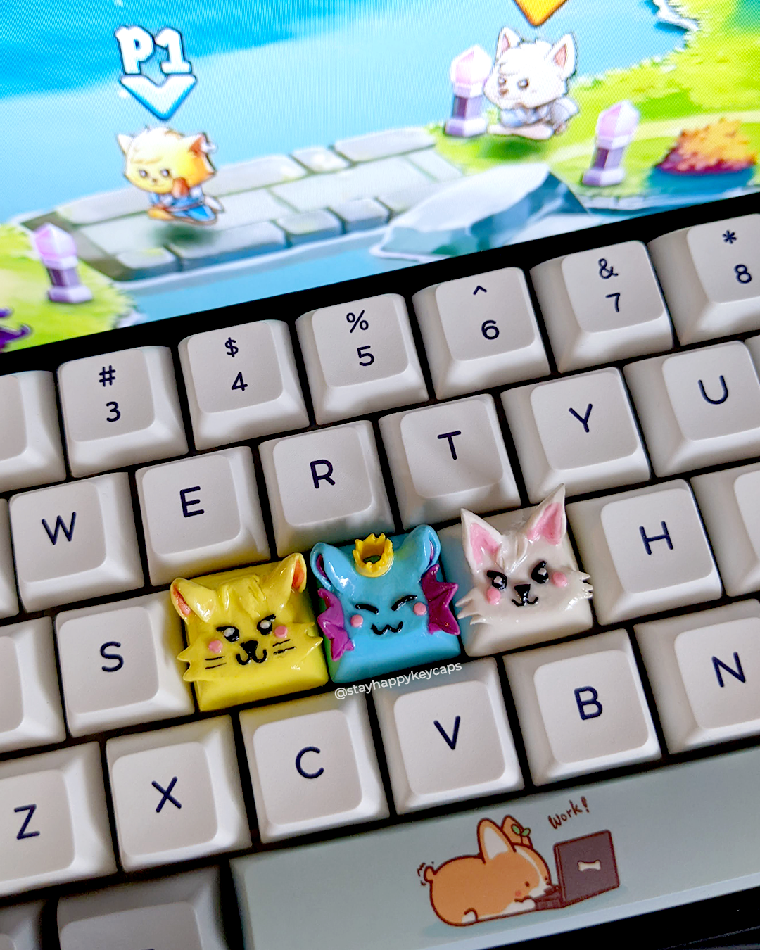 Made some Cat Quest II clay keycaps of my favorite characters! They now