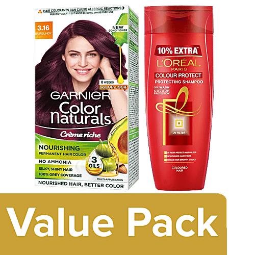 Buy bb Combo Garnier Hair Color (70ml+60g) Shade 3.16, Burgundy+Loreal