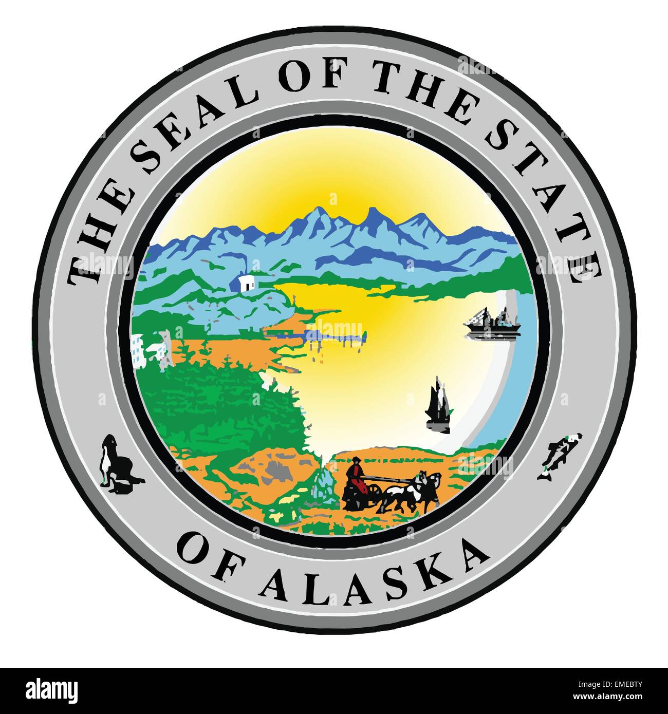 Alaska State Seal It features a fish, a seal, a farmer, a smelter,. learn about the design, adoption and meaning of the alaska state seal, which represents the state's natural and. The rays above the mountains represent the. learn about the history and symbolism of the alaska state seal, which features rays, a smelter, a train, ships, trees, a farmer, a.. Alaska State Seal.