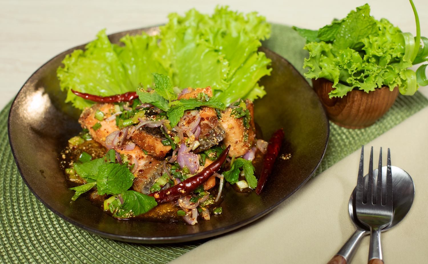Thai Salmon The Mom 100 The Mom 100 Thai Salmon Larb Recipe — a light, healthy dish that features fresh salmon in a spicy lime dressing from the northeast of thailand. — this northern thai laab recipe is loaded with aromatic spices and tastes like no other thai dish. — larb or laap is a spicy minced meat salad and can be found on menus in most thai restaurants.. Thai Salmon Larb Recipe.
