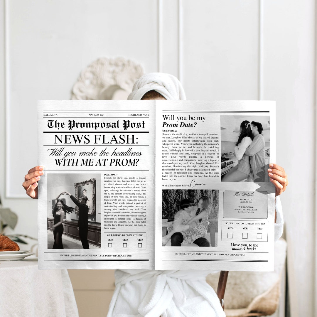 Prom Proposal Newspaper Bouquet, Canva Prom Newspaper Flower Wrap