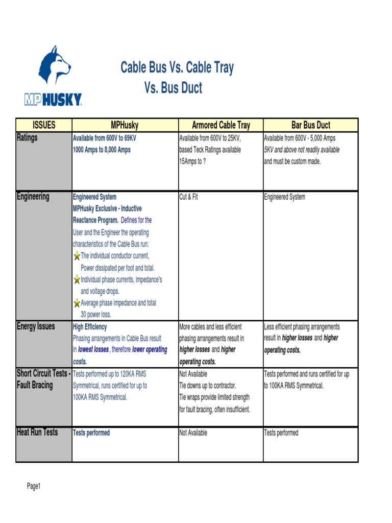 √ extended service life√ system cost√due to the. comparing cable tray and cable bus for power distribution systems white papers white paper #2402, aug 26,. Bus duct is defined in the nec 368.2 as a grounded metal enclosure containing factory mounted, bare or insulated conductors, which are usually copper or aluminum bars, rods, or tubes. Cable tray systems offer a high degree of versatility and can accommodate a wide range of cable types. comparison of the two technologies. Cable tray options also tend to steer designs toward a basis of design that is unique within the industry. the cable bus advantage cable bus vs cable tray. designing power cable feeders is very similar to the first method, although the wider range of conductor assembly types dictate more specific ampacity calculations for specific products. the cable bus system is the most reliable, safe and economical electrical power feeder system that utilizes fully insulated and single conductor power cables.