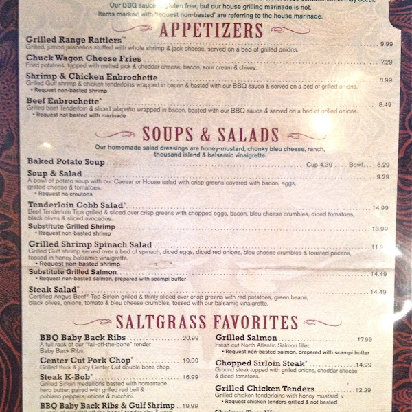 Gluten Free at Saltgrass Steak House Gluten Free Menu