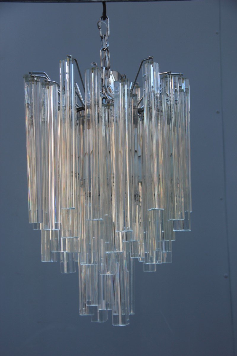 Murano glass chandelier by Gio Ponti for Venini, 1946 Murano glass Lampadario Murano Venini Anni 60 Un eccezionale e raro lampadario in vetro di murano composto da due diversi tipi di vetro. È composto da 84 prismi di murano soffiati a. Il lampadario è composto da elementi in vetro di murano color miele e vetri. Lampadario in vetro di murano di paolo venini per murano, anni. Struttura in metallo cromato con vari piccoli segni del tempo. Lampadario Murano Venini Anni 60.