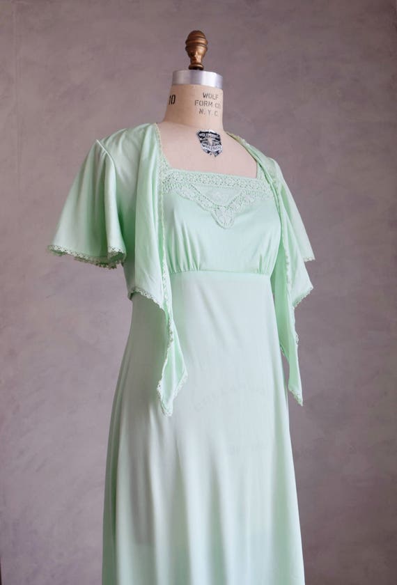 vintage 1970s mint green maxi dress and bolero vint… Gem