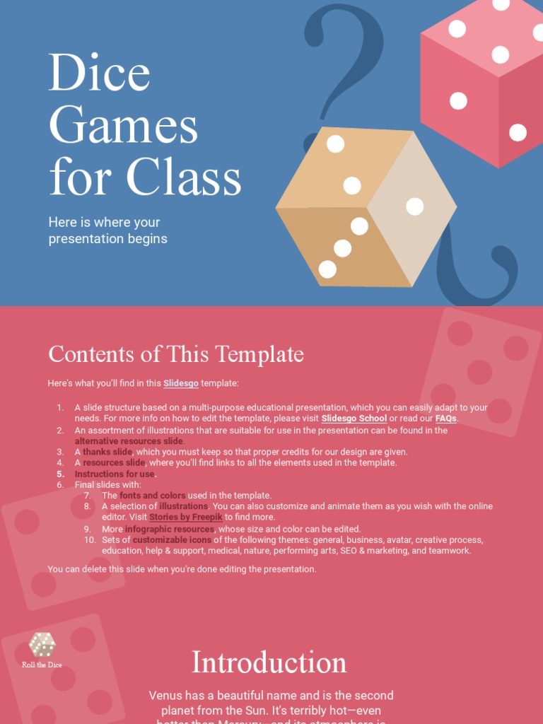 Dice Games For Class by Slidesgo PDF Solar System
