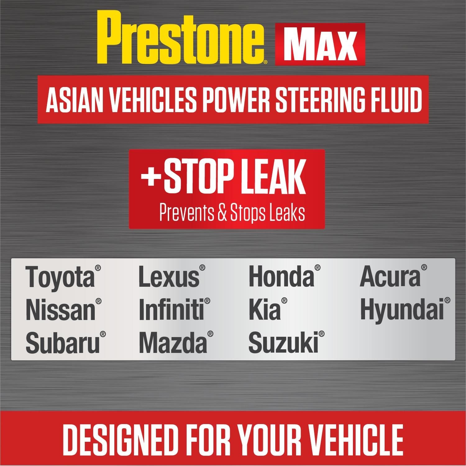 Prestone MAX Asian Vehicle Power Steering Fluid with Stop Leak 12oz Prestone Asian Power Steering Fluid Honda Prestone asian power steering fluid is a premium, fully synthetic fluid developed for use in all asian vehicles,for honda, acura, toyota, lexus, scion, nissan, infiniti, mazda, hyundai, kia and other. The prestone synthetic asian formulation power steering fluid for honda is $6.99 for a 10 oz bottle at walmart. Prestone is one of the best honda power steering fluid equivalents.. Prestone Asian Power Steering Fluid Honda.