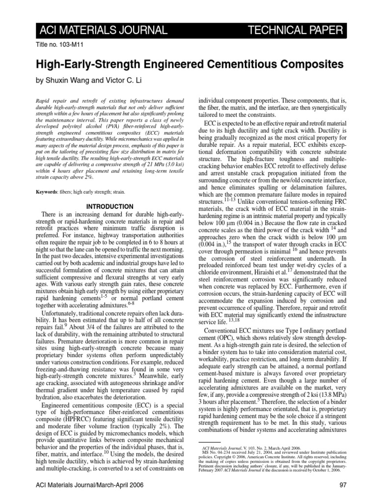 HighEarlyStrength Engineered Cementitious Composites Aci Materials