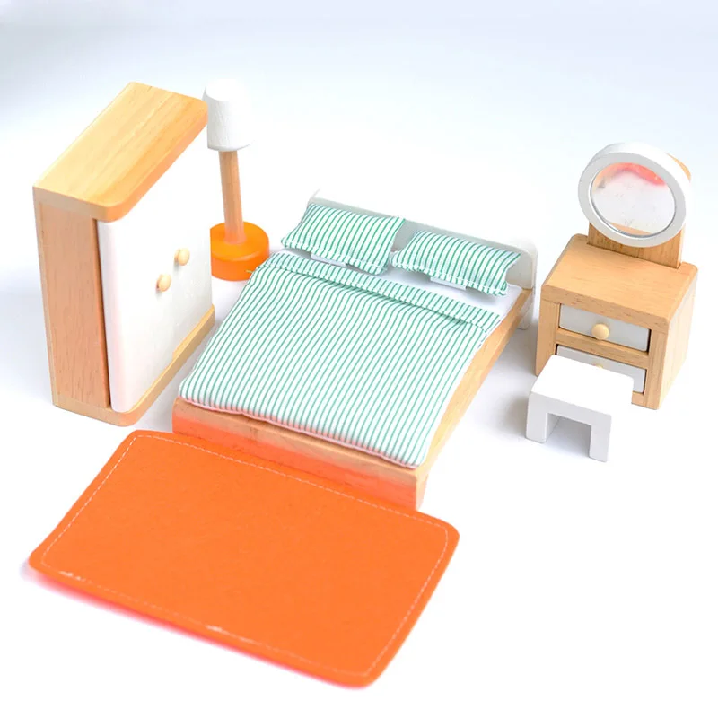 mini wooden furniture doll house toy living room solid furniture set