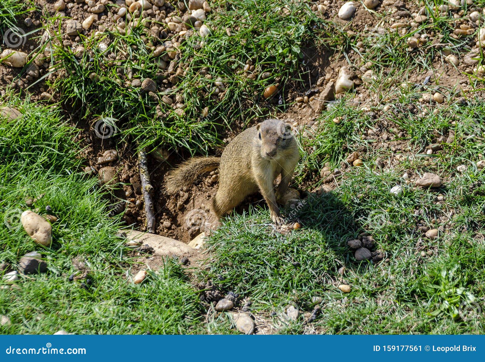 Burrow and ground squirrel stock image. Image of hole 159177561