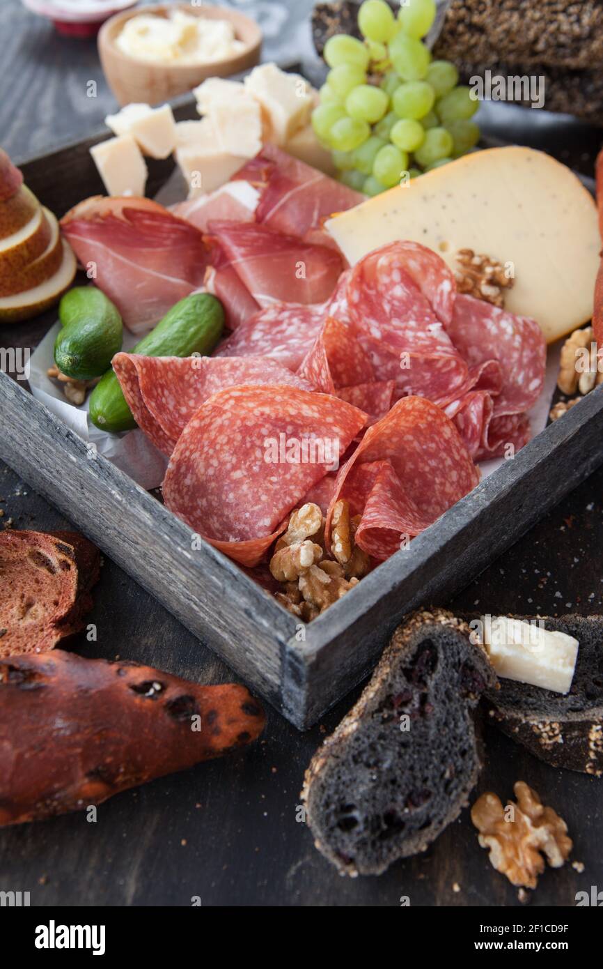 Assorted salami and cheese Stock Photo Alamy