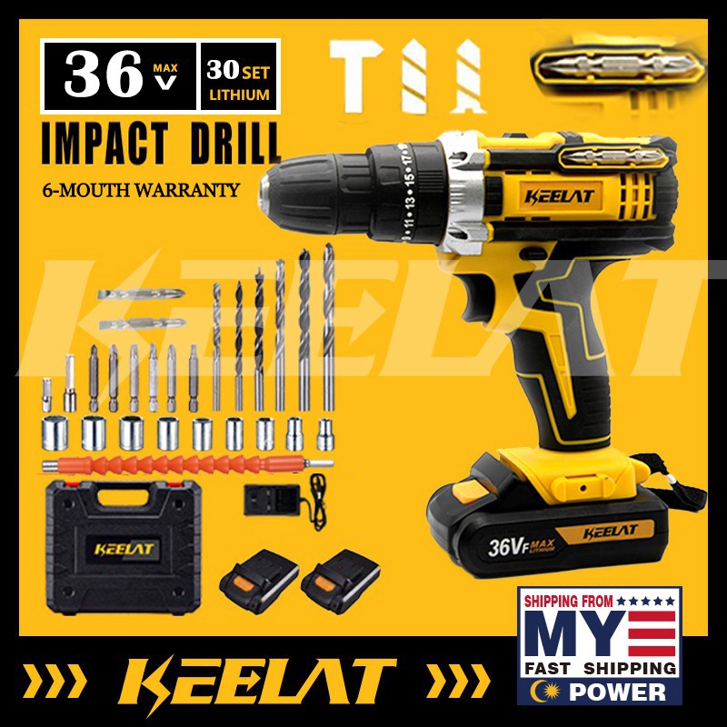 KEELAT Cordless Impact Drill 12v/18v/36v Hammer Electric Screwdriver