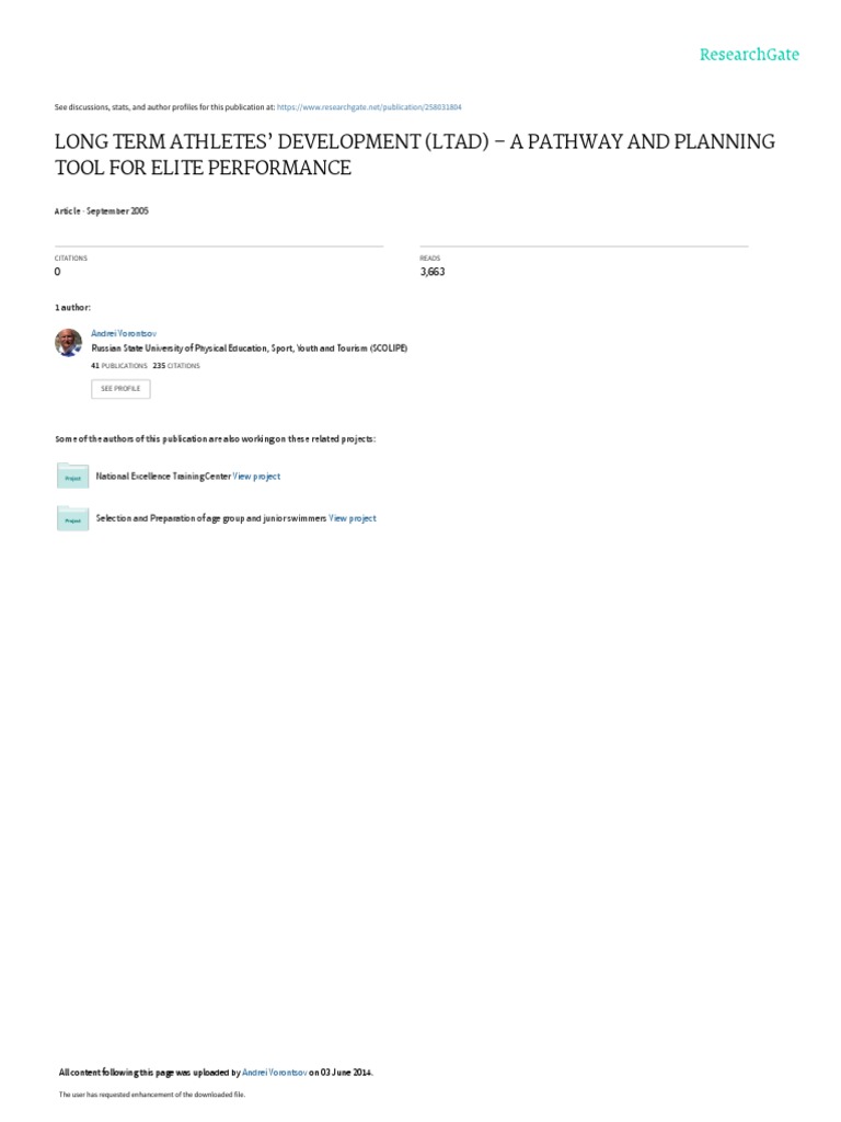 Long Term Athletes' Development (Ltad) A Pathway and Planning Tool