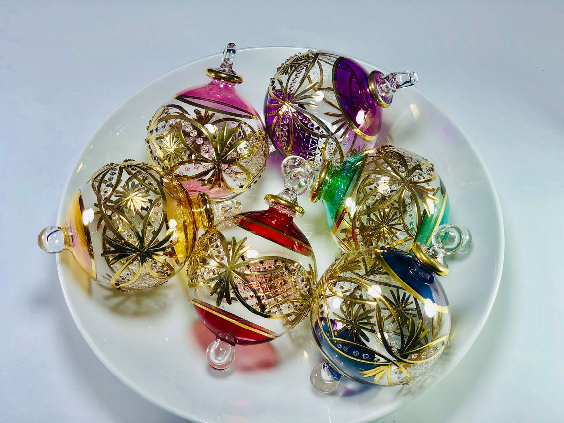 Egyptian hand blown glass Christmas ornaments decorative by Etsy