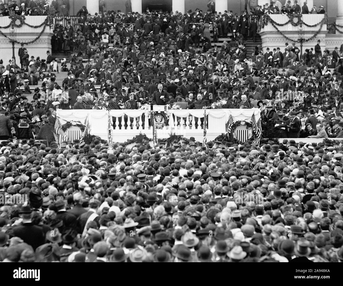 PRESIDENT WOODROW WILSON delivering his inaugural address, 3/5/13 Stock Photo Alamy Woodrow Wilson Speech President woodrow wilson in a speech before congress on january 8, 1918, outlining his vision for ending world war i in a way that would prevent such a conflagration from occurring again. Read the full text of president woodrow wilson's address to congress on january 8, 1918, outlining his vision for a peaceful and democratic. The fourteen points were a. Woodrow Wilson Speech.