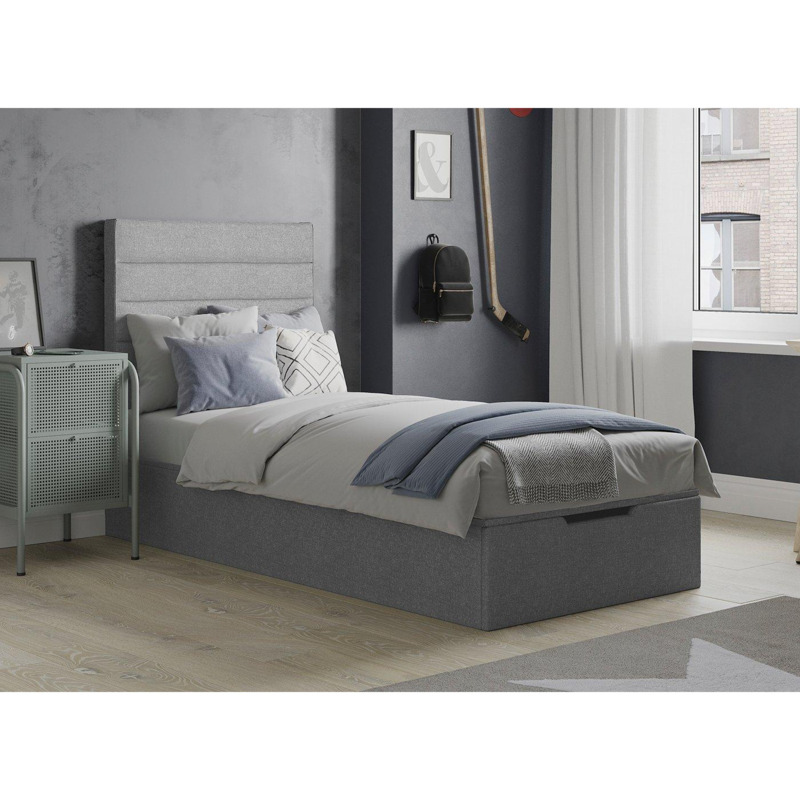 Sutton Upholstered Ottoman Bed Frame 3'0 Single Silver by Dreams