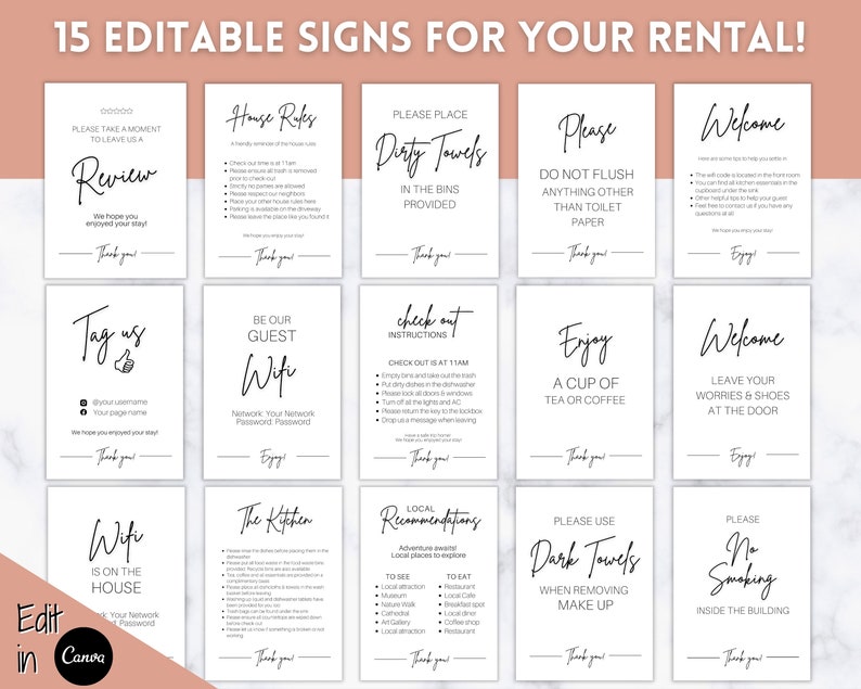 Ultimate VRBO Template BUNDLE Editable Vacation Rental Sign Etsy UK