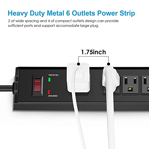 HHSOET Metal Wall Mountable Surge Protector Power Strip 1500 Joules, 6