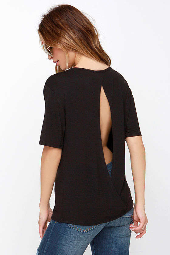 Cute Black Top Black Tee Open Back Top 26.00 Lulus
