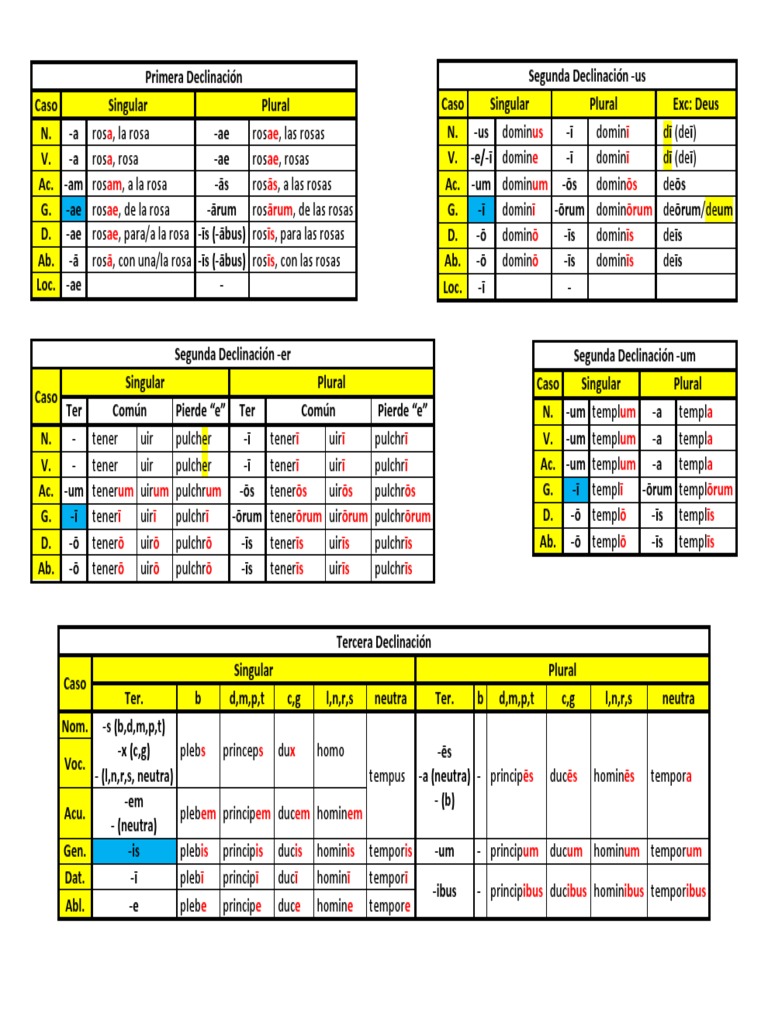 Tablas de Latín Declinaciones y Conjugaciones Roma antigua Europa
