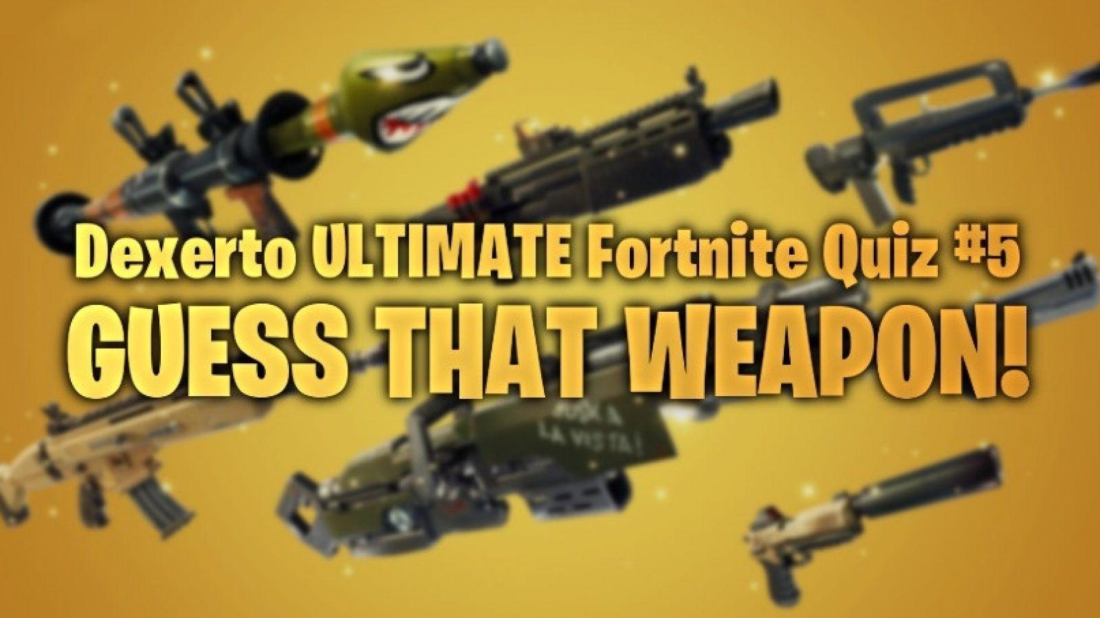 Can you name the Fortnite Weapons? Quiz By V0IDLLOYD Fortnite Gun Quiz Test your knowledge on this gaming. In this quiz, we've selected a handful of the most iconic weapons in fortnite and it's up to you to see if you can match them to their correct name!â so are you ready to see if you can get a victory royale on this. Quiz yourself with questions and answers for fortnite weapons. Fortnite Gun Quiz.