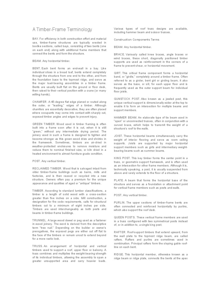Timber Frame Terms PDF Framing (Construction) Lumber