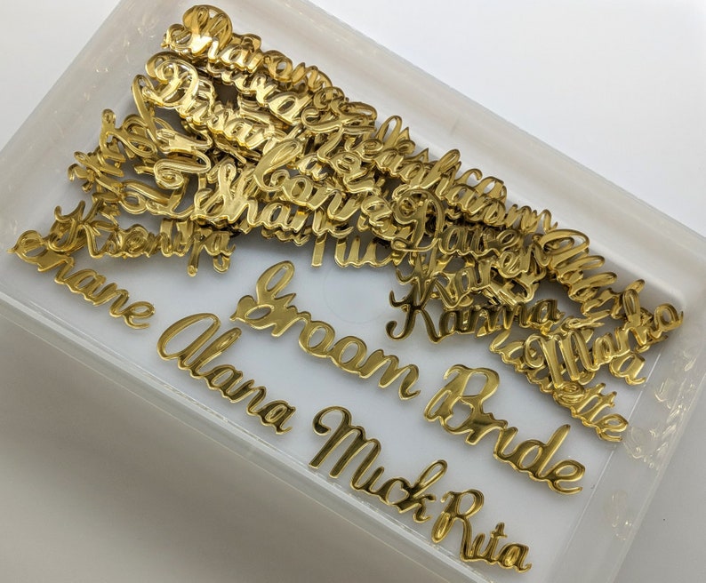 Laser Cut Names Gold Place Cards Acrylic Place Cards Gold Etsy Laser Cut Place Cards Names — these personalized place cards are the perfect finishing. check out our laser cut place cards selection for the very best in unique or custom, handmade pieces from our place cards. embellish your wedding table setting with these gorgeous wooden place cards. check out our laser cut place card selection for the very best in unique. Laser Cut Place Cards Names.