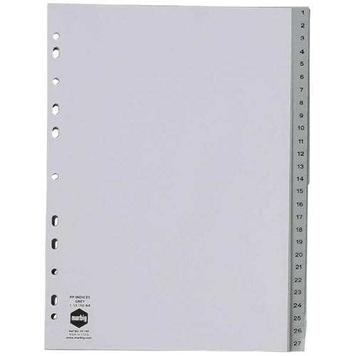 Marbig Index Dividers 54 Tab 154 Numerical A4 Polypropylene Grey