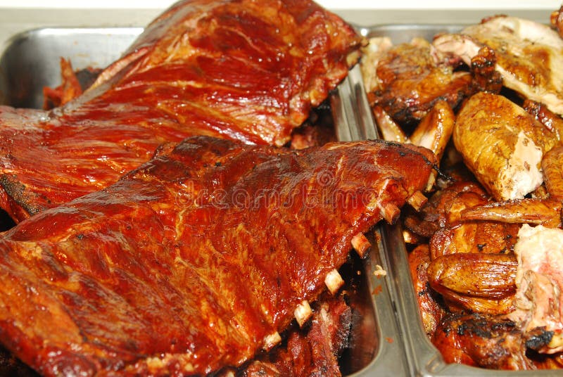 BBQ Ribs and Chicken in a Buffet Line Stock Photo Image of beef