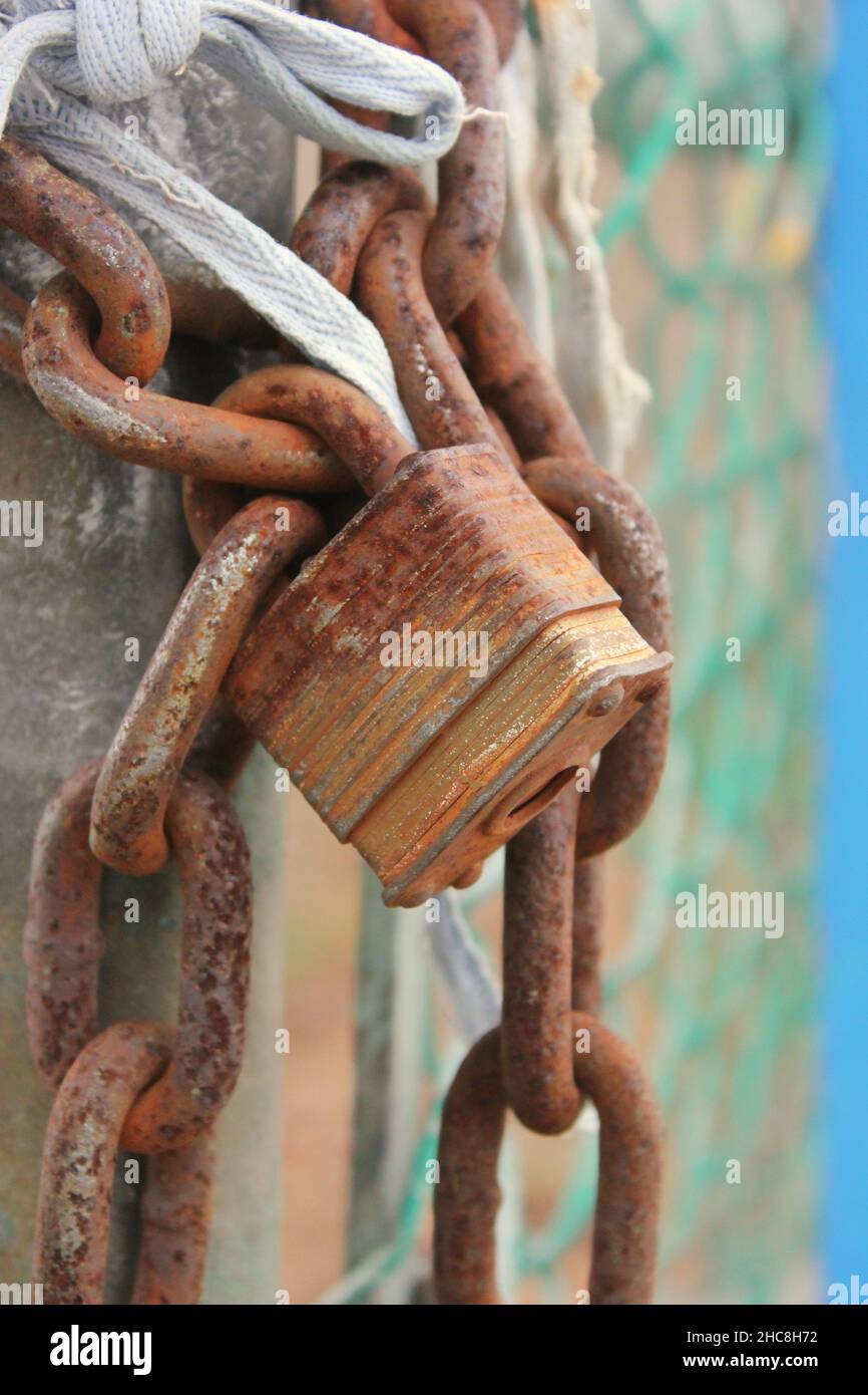 Chain Link Fence Gate Secured with Rusted Chain and Padlock Stock Photo Image of keys, gate Chain Link Fence Gate Rust The chainlink fence gate is a fence gate made of metal chainlinks. When locked, the chainlink fence gate stops players from passing through but does nothing to obstruct light, gunfire, or a player’s reach. The chainlink fence is a fence that can be placed in a building frame. Chain fence is pathetically weak and falls over from a gentle breeze.. Chain Link Fence Gate Rust.