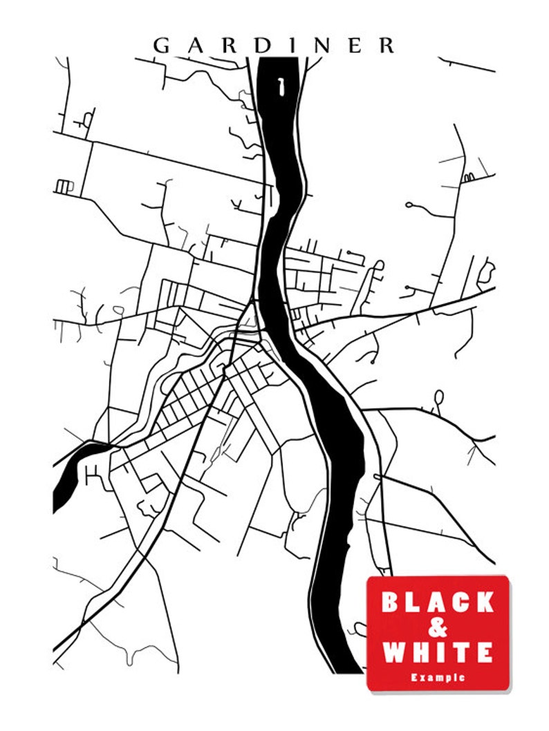 Gardiner ME Map Print Randolph Maine Etsy