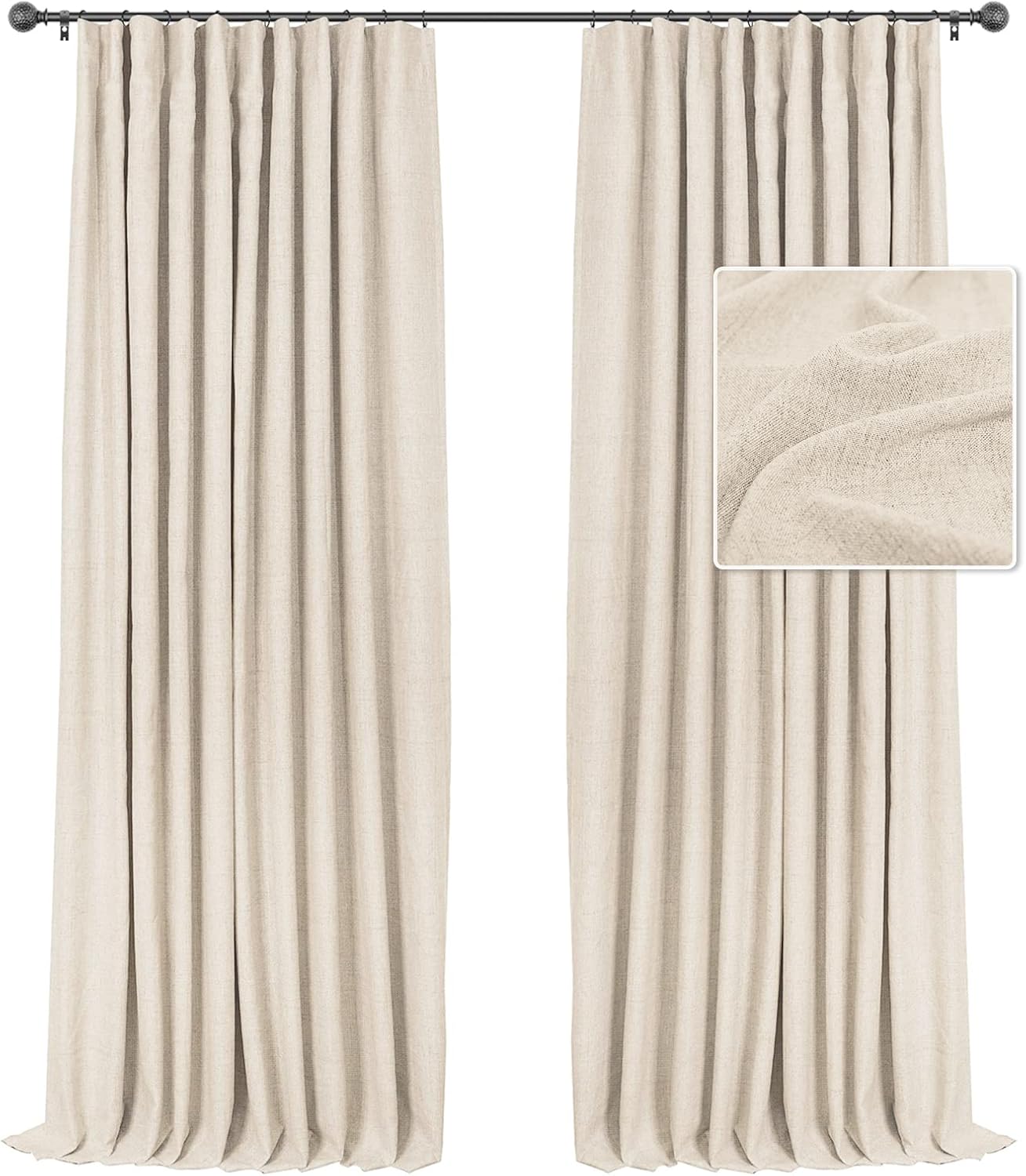 INOVADAY Blackout Curtains, 2Panel Linen Textured 100 Thermal