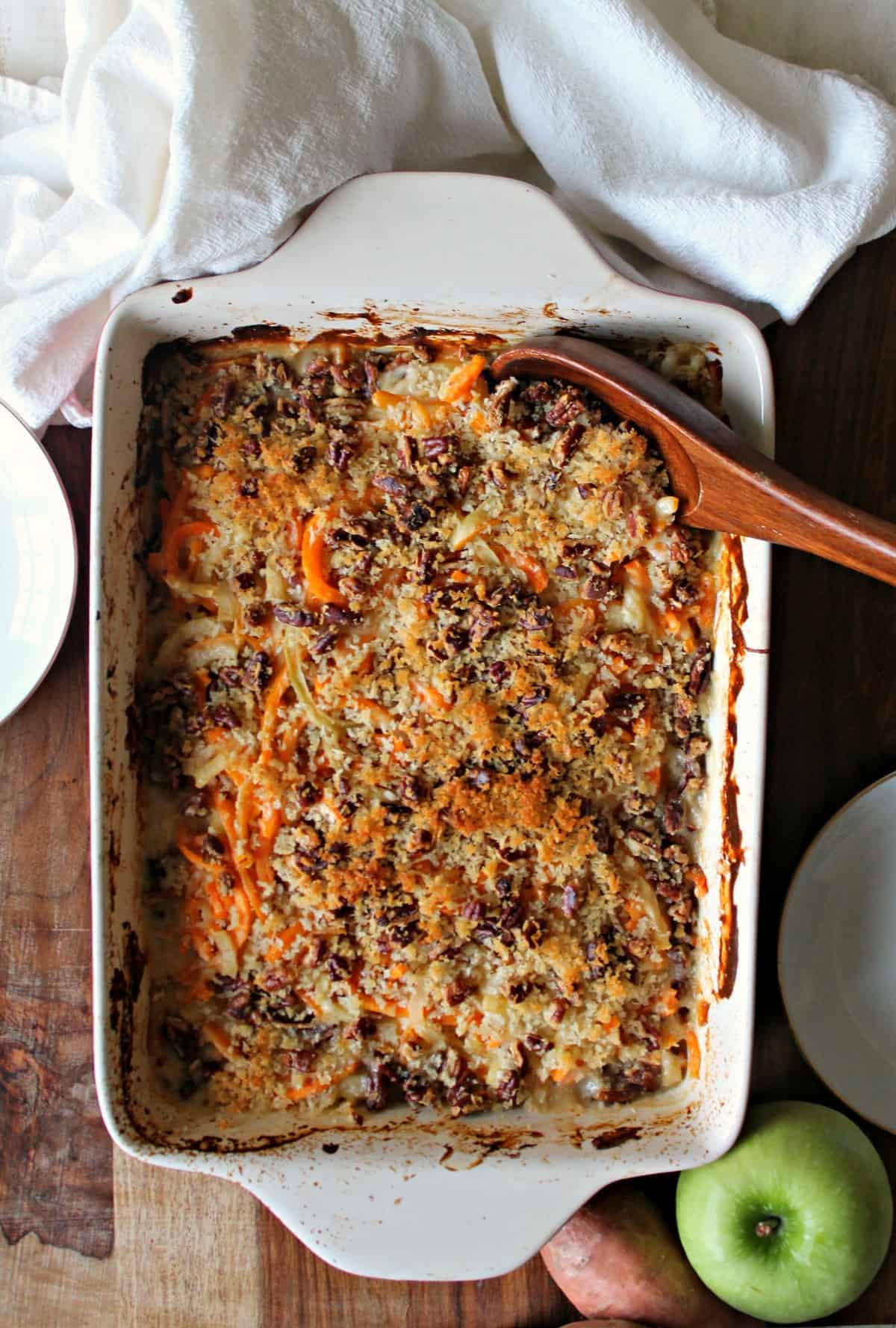 Spiralized Sweet Potato, Apple & Gouda Gratin