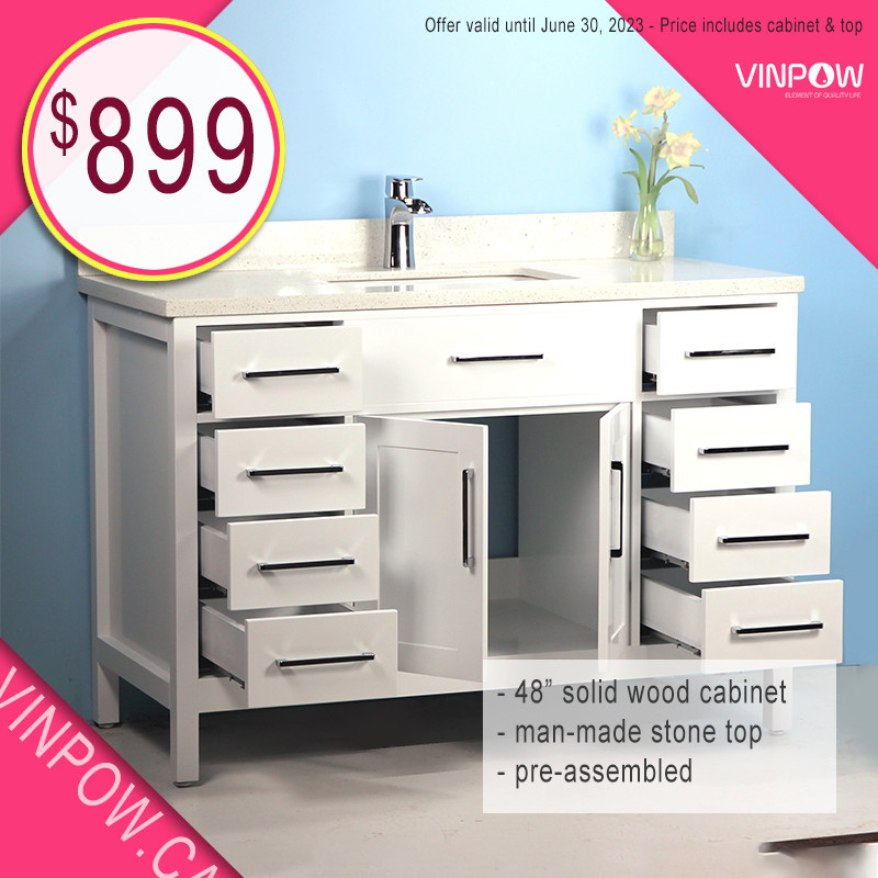 Budget on All Styles! On Sale Vanity/48" wood cab 899/showers Bathwares Markham / York