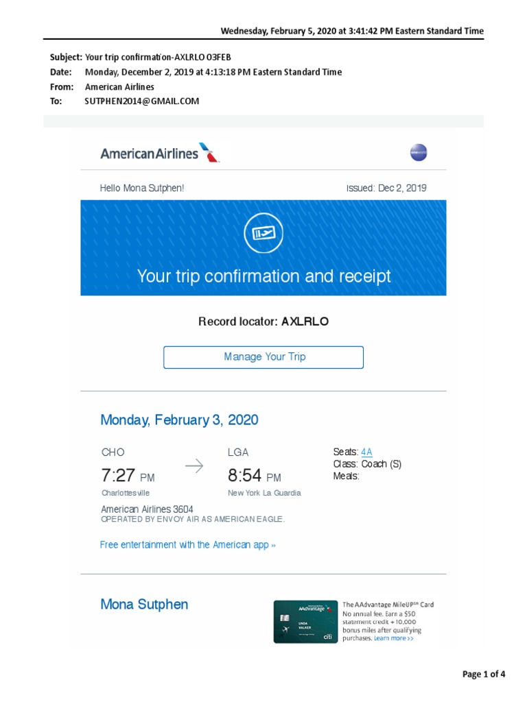 American Receipt PDF PDF Baggage Airlines