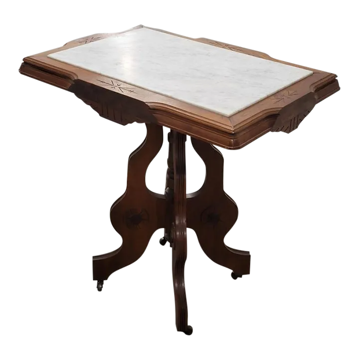 Victorian Eastlake Walnut Side Table With White Marble Picture Frame