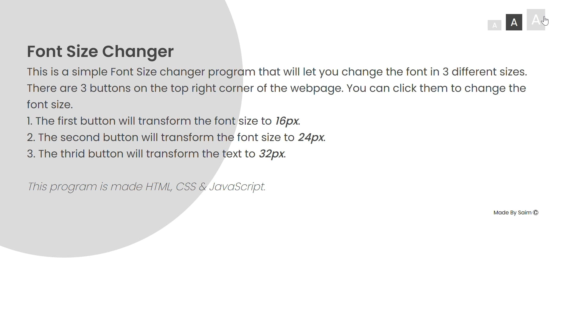 GitHub Saimcode/fontsizechanger Font Size Changer Made Using HTML