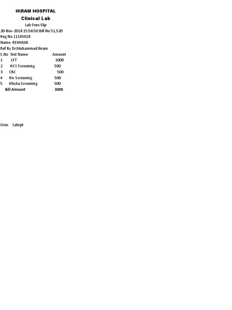 Clinical Lab Bill Amount 3000 PDF