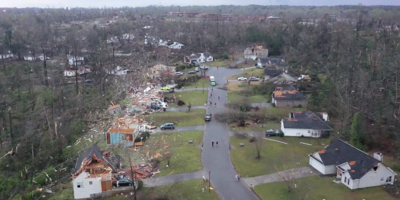 Drone Footage Shows Perfectly Intact Home Surviving Deadly Tornado Georgia Dome This storm struck at 938 pm edt during an ncaa basketball game between the university of alabama and mississippi state. Located in atlanta between downtown to the east and vine city to the west, it was owned and. An isolated supercell developed just northwest of atlanta, ga, during the evening of march 14, 2008. The tornado ripped panels from the. Tornado Georgia Dome.