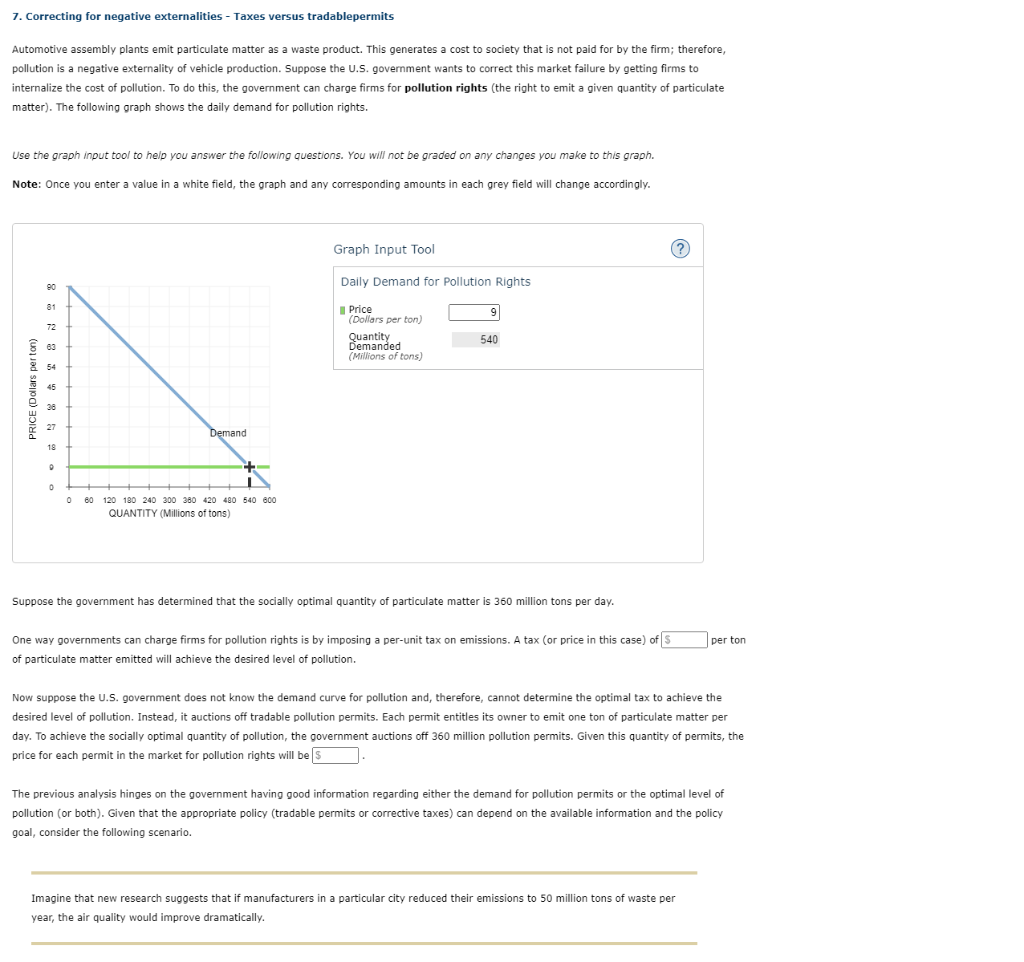 [Solved] 7. Correcting for negative externalities Taxes