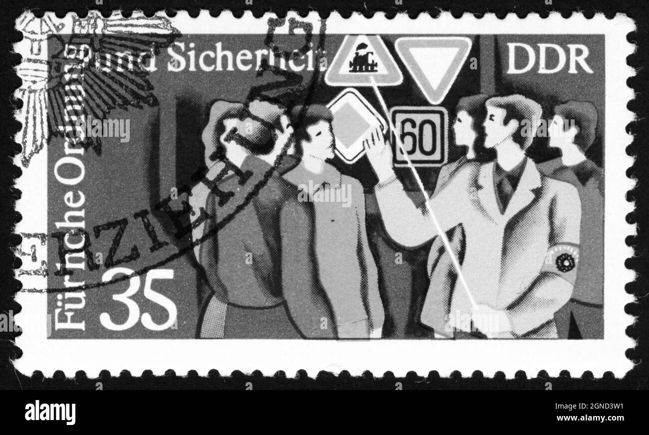 Stamp print in East Germany, Traffic Laws Stock Photo Alamy